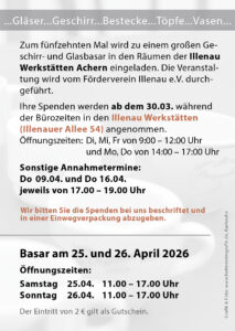 Der Eintritt kostet 2,00 € und kommt der Arbeit der Illenau Werkstätten zugute.